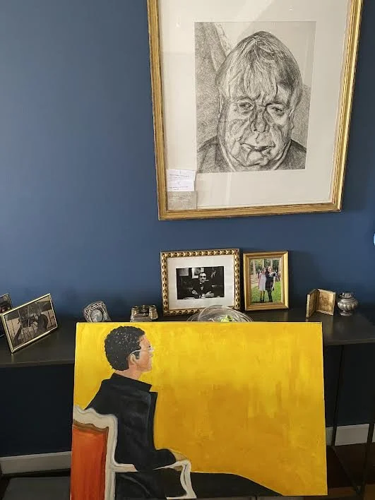 “Getting framed between Lucian Freud etchings is a new addition by J.Look. It’s being framed and will look most interesting on my wall.” This painting brings warmth and humanity and hope for the future……Your painting is mindful and we just don’t have enough of that in the world today.”